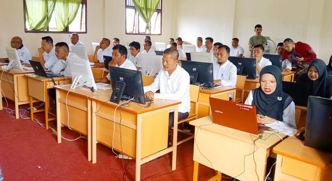 Suasana Ujian Dinas dan UPKP PNS Aceh Singkil, di Laboratorium Komputer UPTD SPF SMP Negeri 1 Singkil. Sabtu, 25 Mei 2024. (ist)