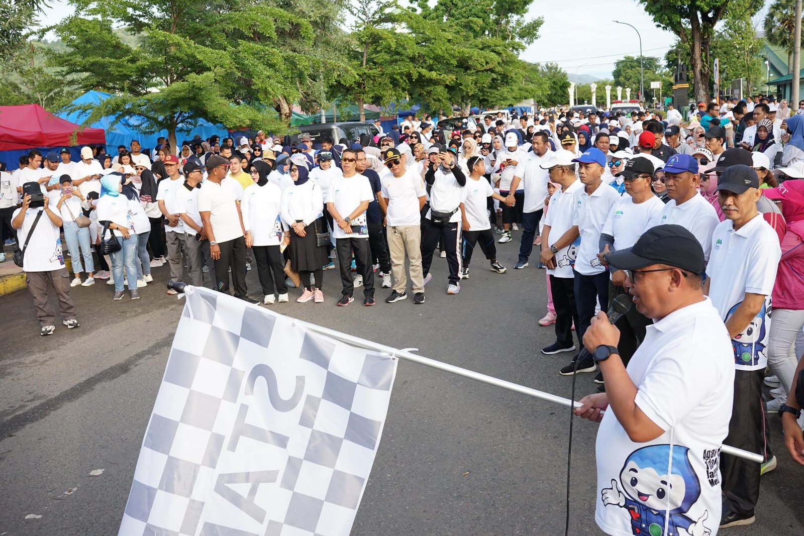 Kegiatan jalan sehat diikuti ratusan peserta dengan rute dari Lapangan Gaspa hingga ke kantor Perumda TM Palopo, Jl Pongsimpin.