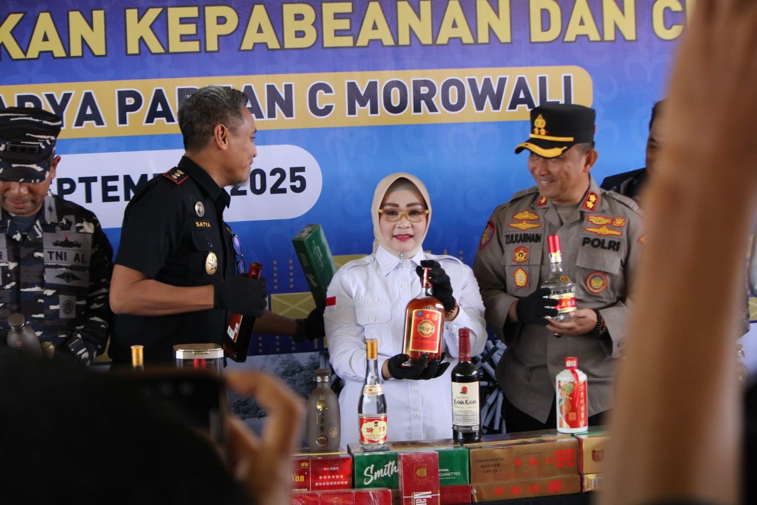 MOROWALI, TEKAPE.co – Wakil Bupati (Wabup) Morowali, Iriane Iliyas menghadiri kegiatan pemusnahan barang hasil penindakan kepabeanan dan cukai yang berstatus Barang Menjadi Milik Negara (BMN).
