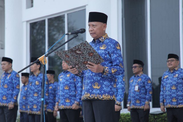 ASAHAN, TEKAPE.co– Bupati Asahan H. Surya, BSc memimpin upacara Hari Kesadaran Nasional Bulan Februari 2024 di halaman Kantor Bupati Asahan, Senin (19/02/2024).