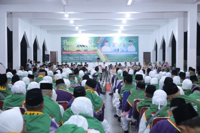 ASAHAN, TEKAPE.co – Bupati Asahan Taufik Zainal Abidin Siregar S.Sos, M.Si bersama Wakil Bupati Rianto SH, MAP beserta Forkopimda lainnya melepas keberangkatan jemaah calon haji Kabupaten Asahan Kloter 15 di Gedung Tahfidz Masjid Agung H. Achmad Bakrie Kisaran, Senin (19/05/2025) dini hari.