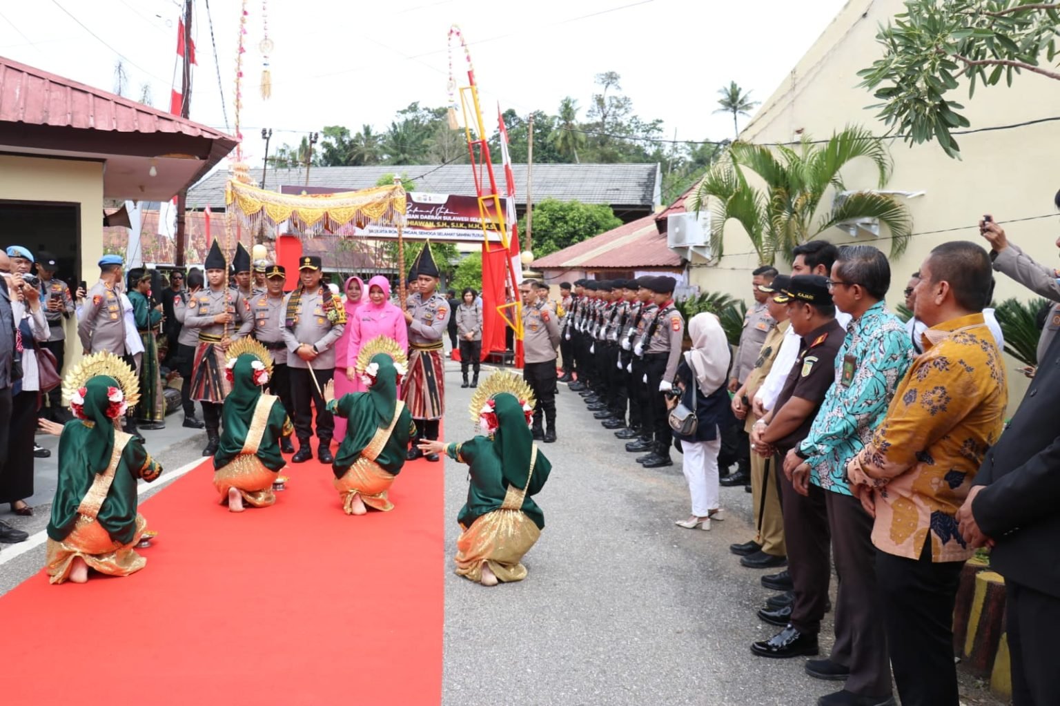 Kunjungan kerja Kapolda Sulsel ini mendapat sambutan hangat dengan prosesi pengalungan bunga dan tarian paduppa, yang merupakan bentuk penghormatan khas daerah.