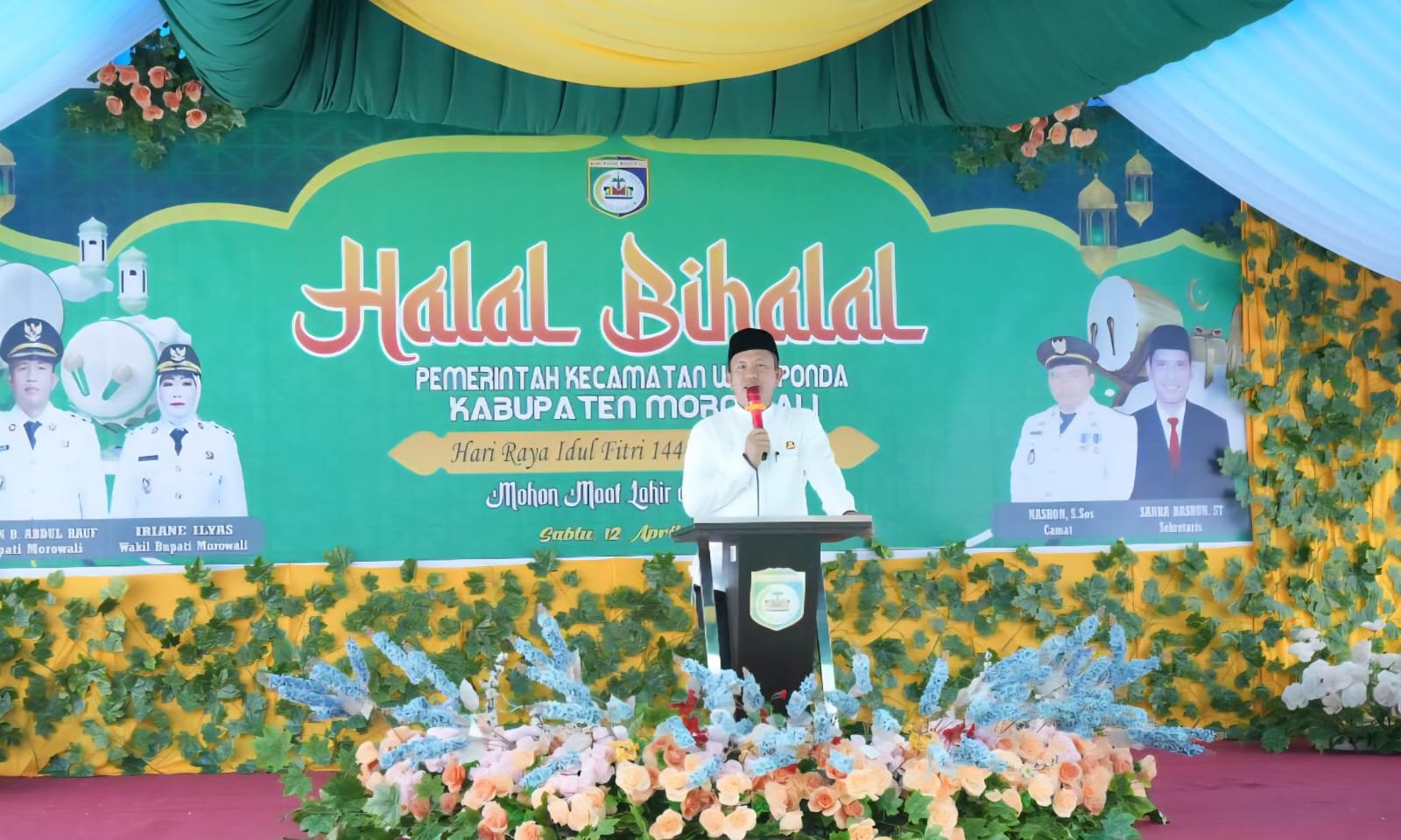 MOROWALI, TEKAPE.co – Bupati Morowali, Iksan Baharuddin Abdul Rauf bersama Wakil Bupati (Wabup) Iriane Iliyas menghadiri acara Halal Bihalal yang digelar oleh Pemerintah Kecamatan Wita Ponda dalam rangka memperingati Hari Raya Idulfitri 1446 Hijriah, Sabtu (12/4/2025).