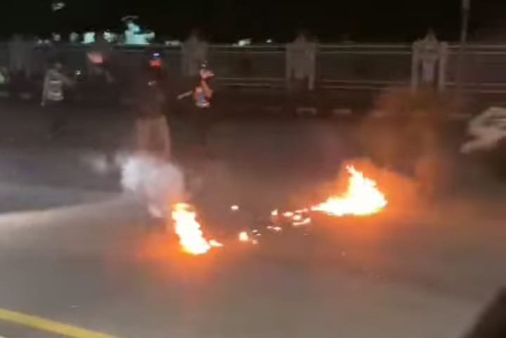 Unjuk rasa 'Indonesia Gelap' masih berlangsung ricuh di depan Kampus Universitas Negeri Makassar (UNM) Jl AP Pettarani, Jumat (21/2/2025) malam.
