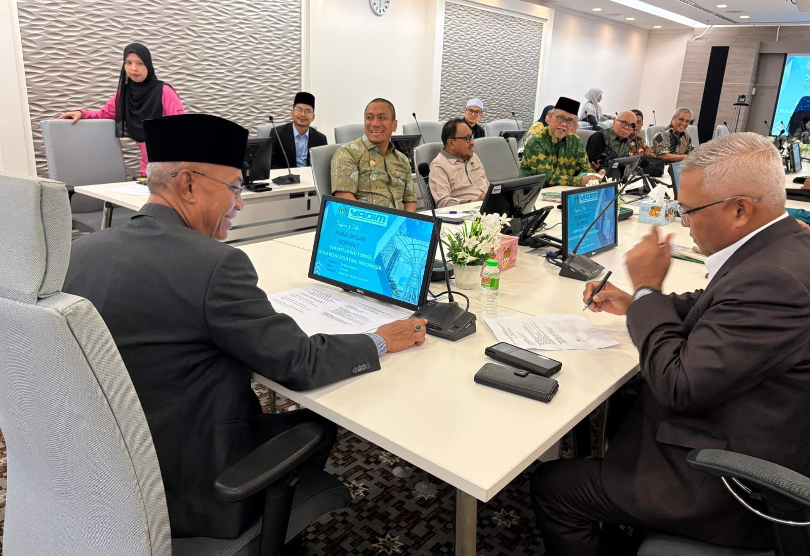 MALAYSIA, TEKAPE.coBupati Luwu Timur, H Irwan Bachri Syam memperkenalkan potensi Luwu Timur saat melakukan kunjungan kehormatan bersama jajaran pimpinan Universitas Muslim Indonesia (UMI), di kantor Yayasan Dakwah Islamiah Malaysia (YADIM) di kawasan Putra Jaya, Malaysia, Selasa (29/07/2025).