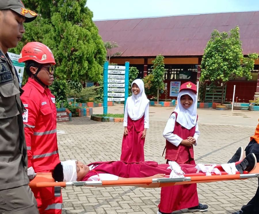 Kegiatan ini juga mengapresiasi dua siswa, Wahyu (kelas VI) dan Muh Zahdan (kelas III), yang tampil sebagai korban dalam simulasi dengan penuh keberanian.