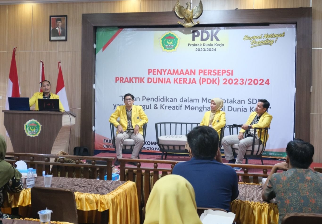 Pengelola PDK FTKOM Tahun 2024 menggelar penyamaan persepsi bagi Dosen Pembimbing mahasiswa Praktik Dunia Kerja (PDK) di Aula E Kampus 1 Kamis (16/5/2024). (dok: uncp)