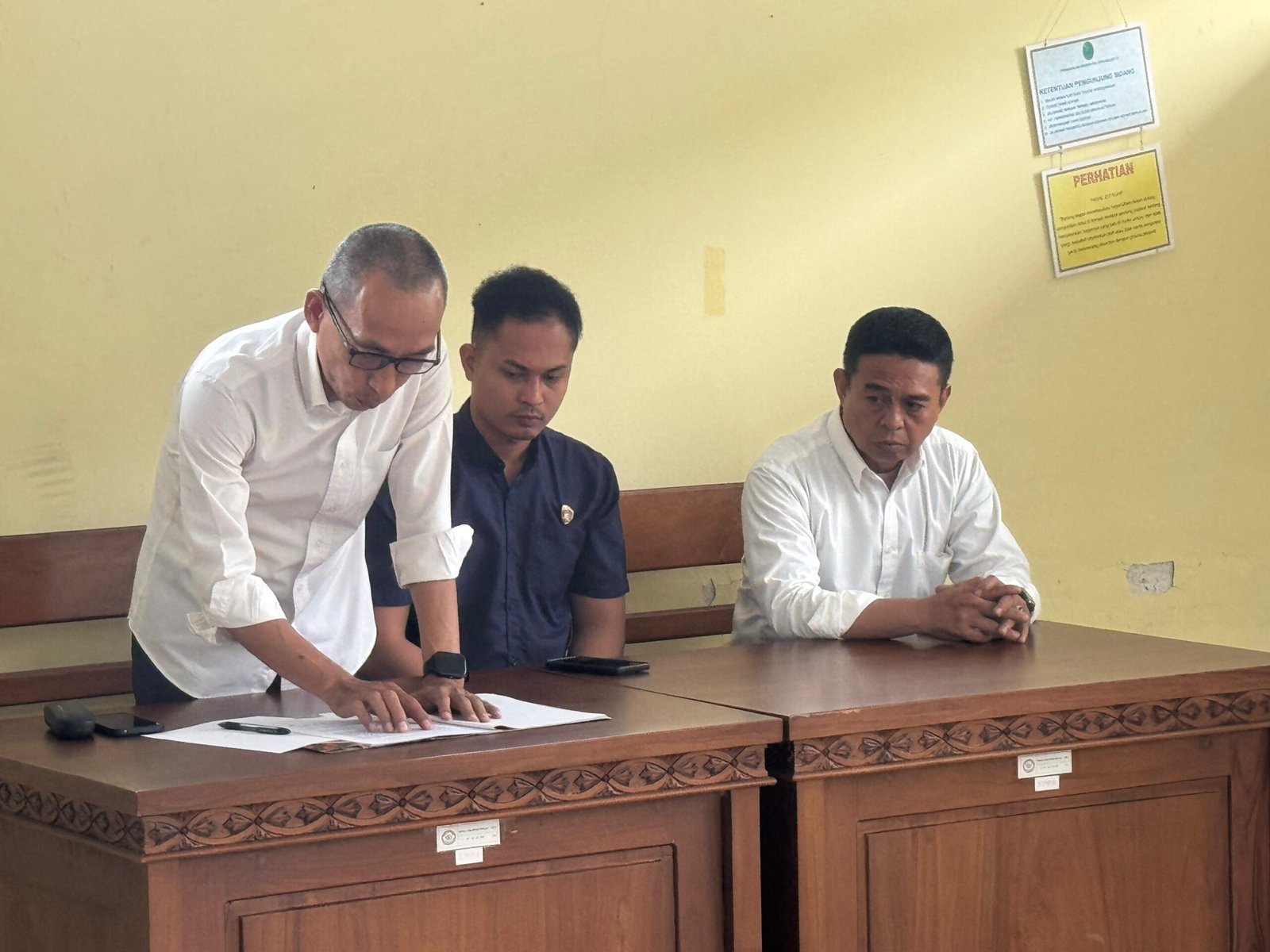 Iptu Nurdin (kiri), selaku kuasa hukum dari Penyidik Satreskrim Palopo, saat praperadilan di Pengadilan Negeri (PN) Palopo, Kamis 31 Juli 2025. (ist)