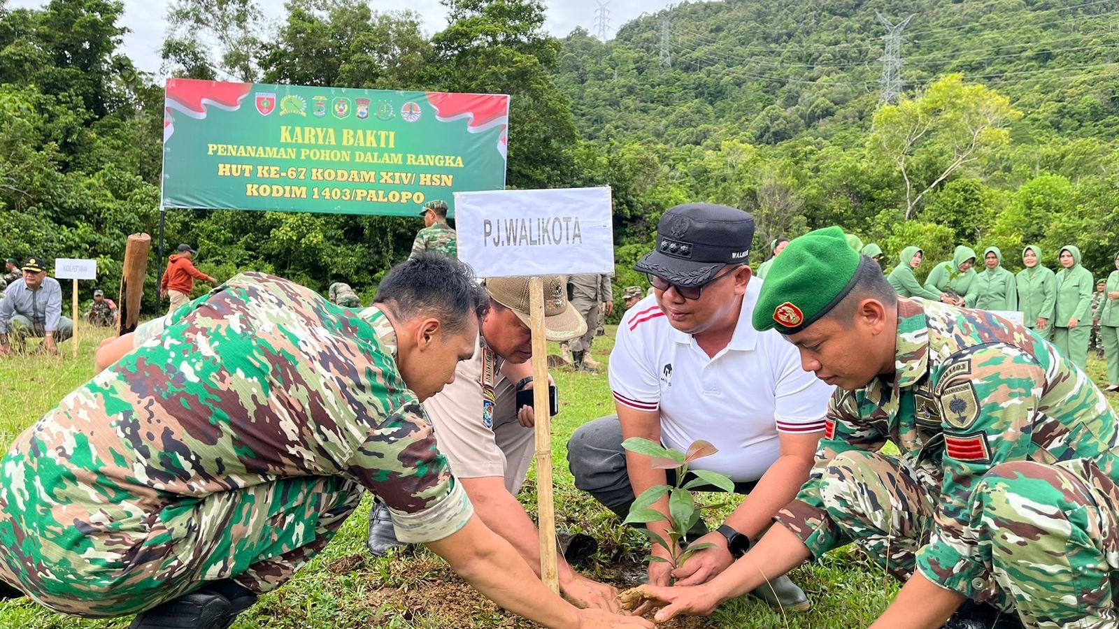 PALOPO, TEKAPE.co – Pejabat (Pj) Wali Kota Palopo, Asrul Sani melakukan penanaman pohon dalam rangka HUT ke-67 Kodam XIV/Hsn Kodim 1403 Palopo.