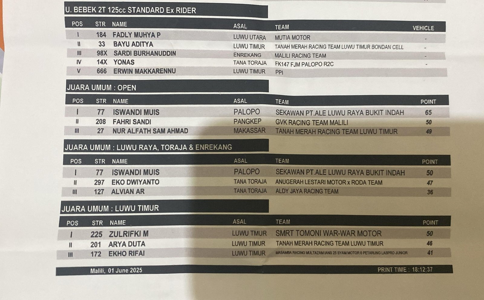 Nama Iswandi Muis dari Palopo mencuri perhatian publik otomotif setelah memborong dua gelar sekaligus: Juara Umum Open dan Juara Umum Luwu Raya, Toraja & Enrekang.