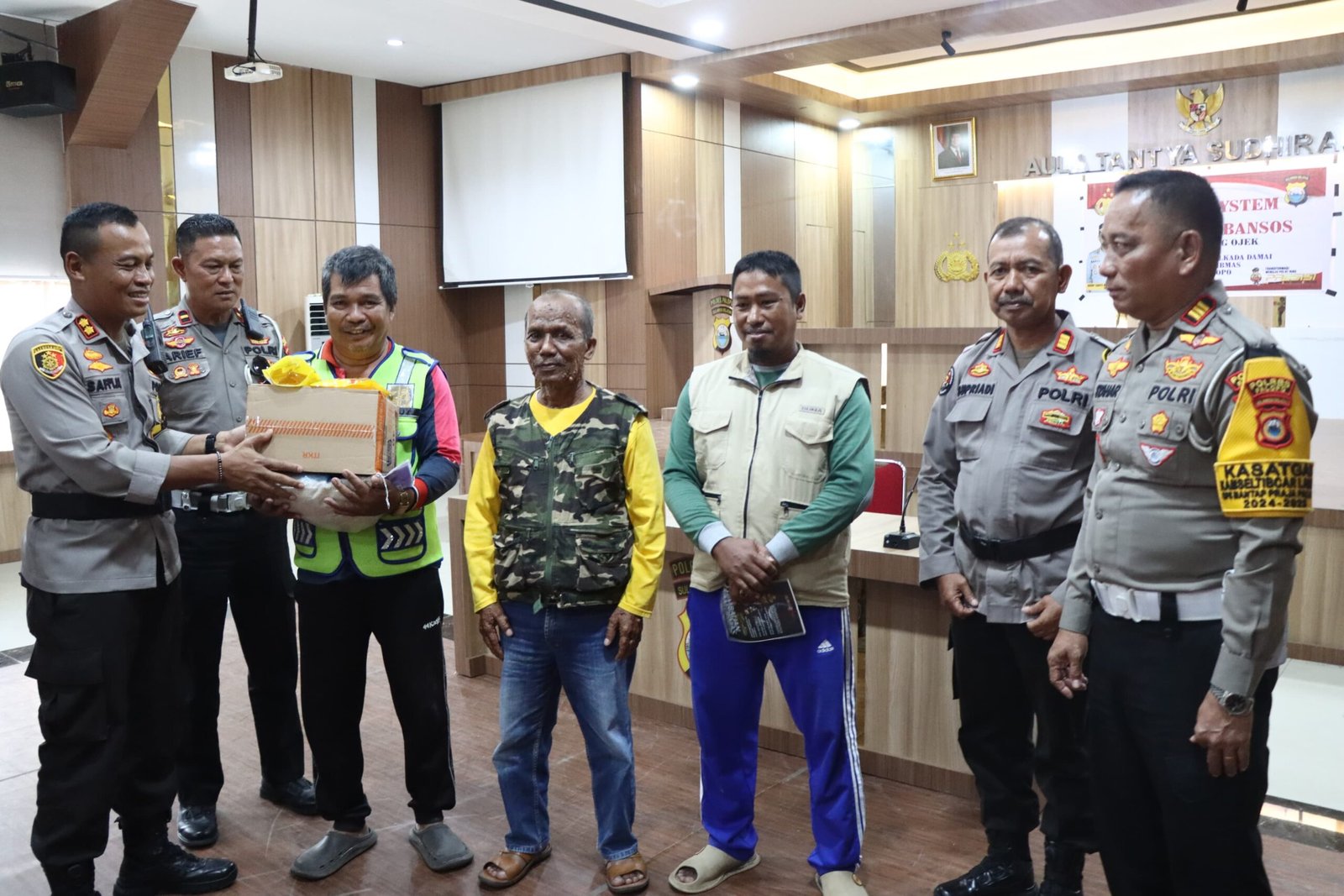 Kegiatan yang dirangkaikan dengan memberikan bantuan sosial (bansos) kepada tukang ojek berlangsung di di Aula Ayla Tantya Sudiradjati Polres Palopo, Kamis 21 November 2024.
