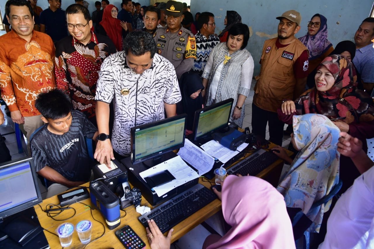 LUWU, TEKAPE.co – Penjabat Gubernur Sulsel Bahtiar Baharuddin melakukan peninjauan layanan perekaman dan penginputan mobile e-KTP di Gedung Seba Guna Rio Rennu, Kelurahan Larompong, Kecamatan Larompong, Kabupaten Luwu, Minggu, 5 Oktober 2023.