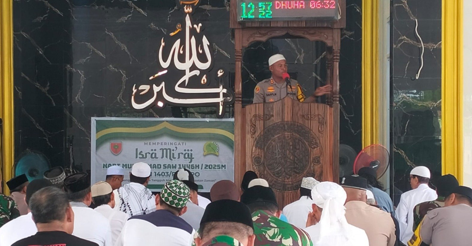 Setelah shalat, Safi’i menyampaikan sejumlah pesan keamanan dan ketertiban masyarakat (Kamtibmas).