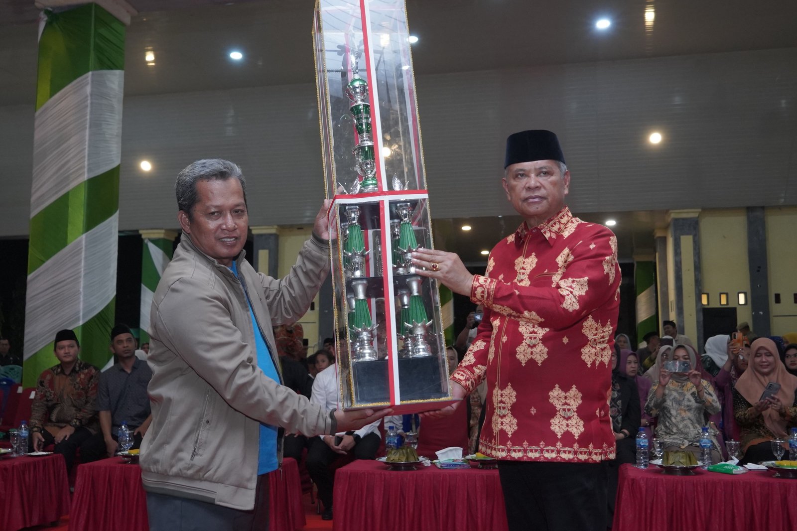 Foto: Bupati Luwu, Dr. Drs. H. Basmin Mattyang M.Pd, Saat Serahkan Piala Musabaqah Tilawatil Qur’an (MTQ) Ke XXXIII Tingkat Kabupaten Luwu yang telah berlangsung dari 5 Februari 2024. (dok.diskominfoluwu)