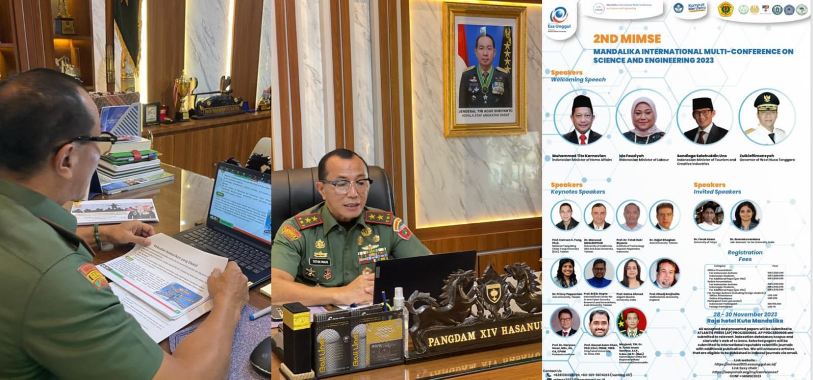 MAKASSAR, TEKAPE.co – Pangdam XIV/Hasanuddin Mayjen TNI Dr. Totok Imam Santoso, S.I.P., S.Sos., M.Tr (Han)., sebagai salah satu keynote speaker pada Mandalika Internasional Multi Conference on Science and Engineering 2023 (MIMSE II), yang dilaksanakan terpusat di Mandalika Lombok 28 hingga 30 November 2023.
