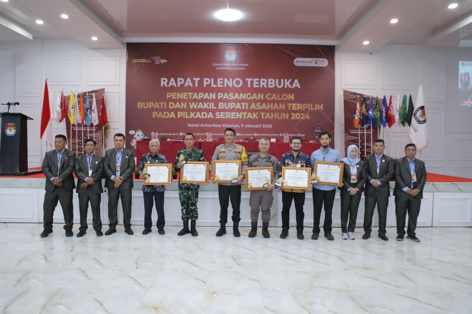 ASAHAN,TEKAPE.co – Berdasarkan Surat Keputusan Komisi Pemilihan Umum Kabupaten Asahan Nomor 5 Tahun 2025 tentang Penetapan Pasangan Calon Bupati dan Wakil Bupati Terpilih Kabupaten Asahan Tahun 2025, KPU Kabupaten Asahan menetapkan pasangan Calon Bupati dan Wakil Bupati Kabupaten Asahan Nomor Urut 1 Saudara Taufik Zainal Abidin Siregar S.Sos., M.Si dan Saudara Rianto SH., MAP dengan perolehan suara sebanyak 178.671 suara atau 74,92% dari total suara sah, sebagai Pasangan Calon Bupati dan Wakil Bupati Terpilih Kabupaten Asahan Periode Tahun 2025-2030 dalam Pemilihan Bupati dan Wakil Bupati Kabupaten Asahan Tahun 2024.