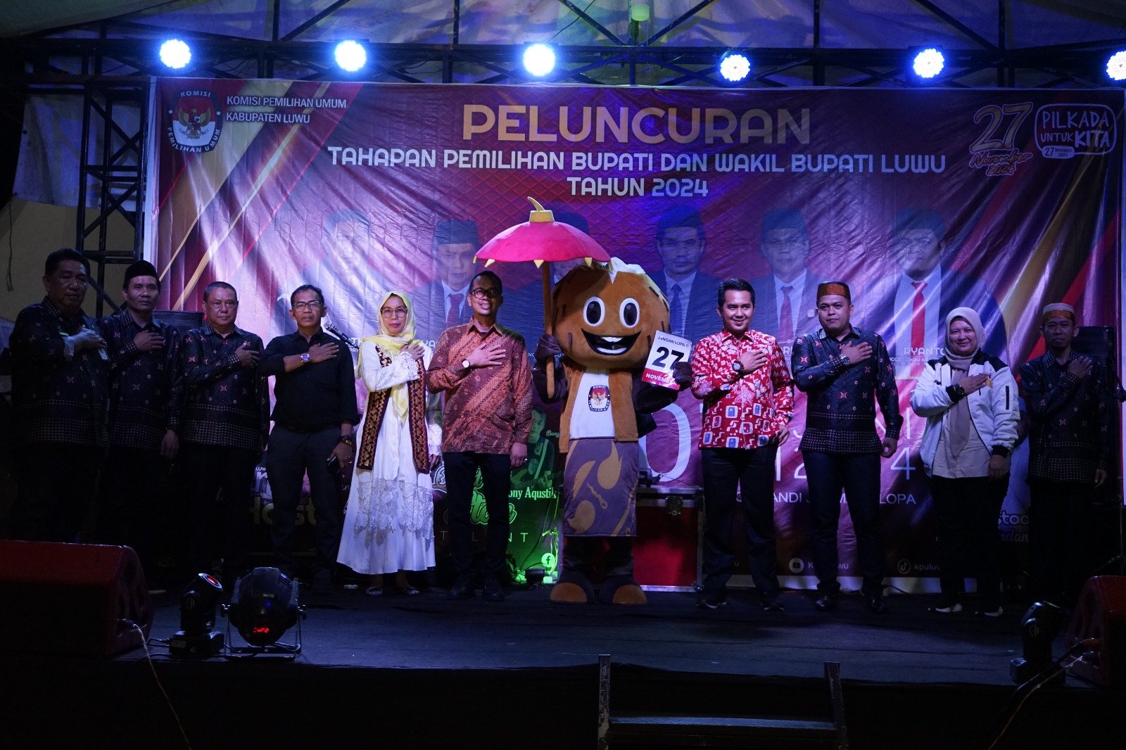 LUWU, TEKAPE.co – Komisi Pemilihan Umum (KPU) Kabupaten Luwu menggelar peluncuran Tahapan Pilkada Luwu tahun 2024, di Tribun Lapangan Andi Djemma Belopa, Kecamatan Belopa, Luwu, Jumat, 07 Juni 2024.