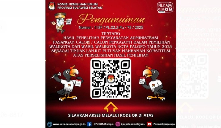 Untuk informasi lebih lanjut mengenai hasil penelitian persyaratan pasangan calon, masyarakat dapat mengakses situs resmi KPU Kota Palopo atau mendatangi kantor KPU setempat.(*)