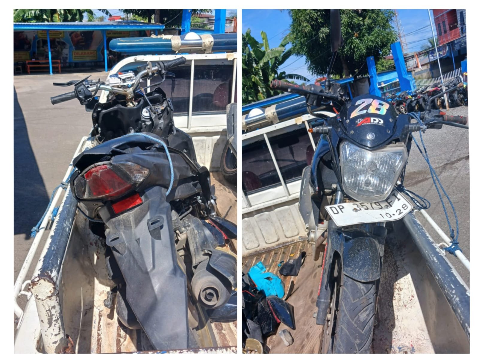 Laka maut tersebut melibatkan motor Yamaha Mio M3 hitam tanpa plat dan Yamaha Vixion merah nopol DP 3579 FI.