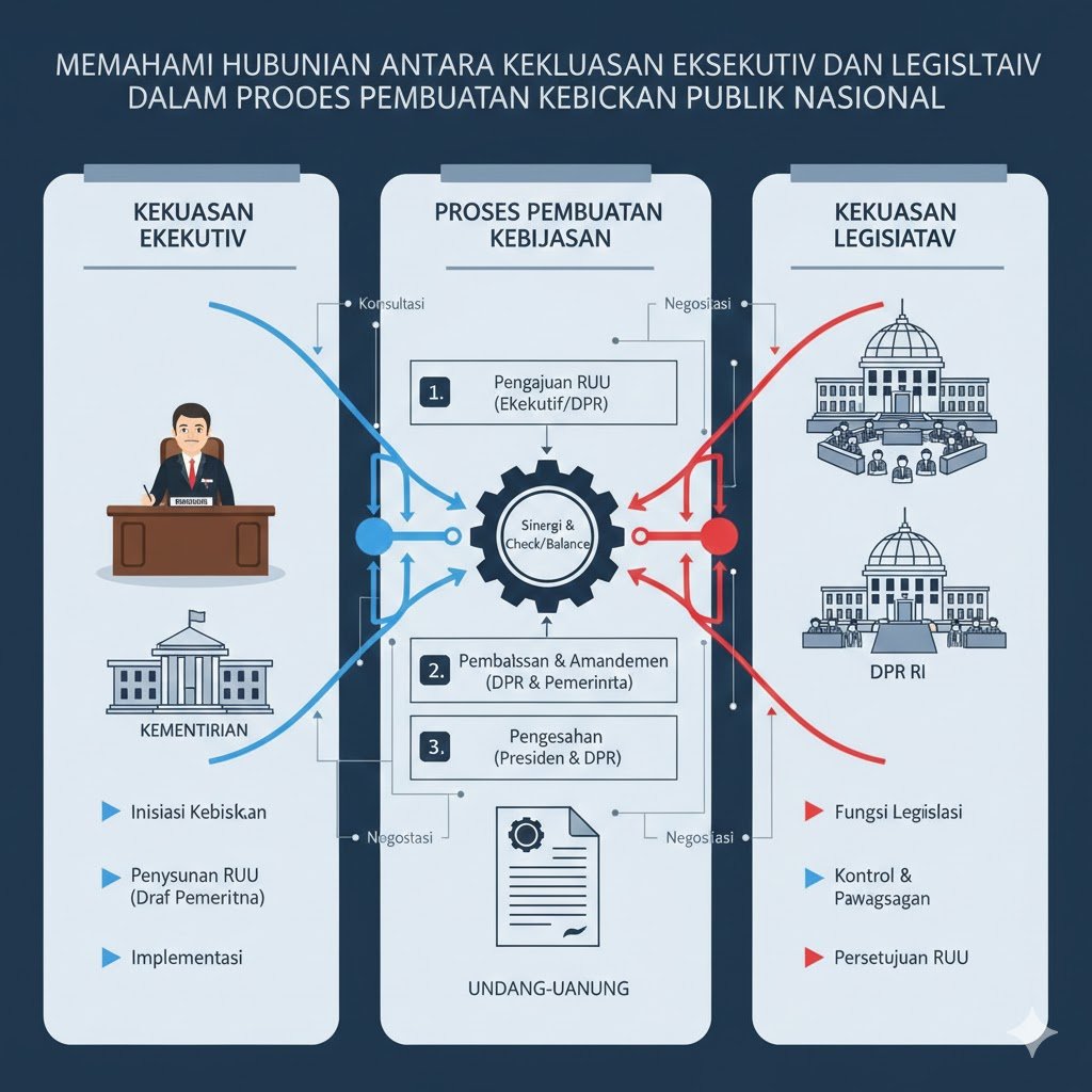 Dalam sistem pemerintahan demokrasi, interaksi antara lembaga eksekutif dan legislatif merupakan poros utama yang menentukan kualitas kebijakan publik. Hubungan ini tidak sekadar bersifat administratif, melainkan sebuah dinamika politik yang kompleks yang melibatkan prinsip checks and balances. Sinergi maupun konflik di antara keduanya akan berdampak langsung pada efektivitas regulasi yang dihasilkan untuk kepentingan masyarakat luas.