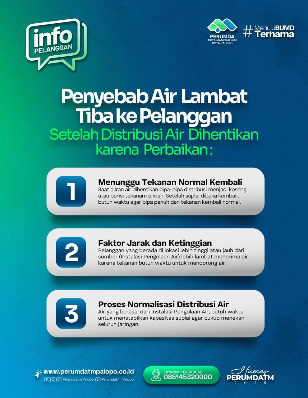 Asisten Humas Perumda TM Palopo, Wiwin S Toni, menjelaskan bahwa kondisi ini merupakan hal wajar yang berkaitan dengan proses normalisasi tekanan dalam pipa distribusi.