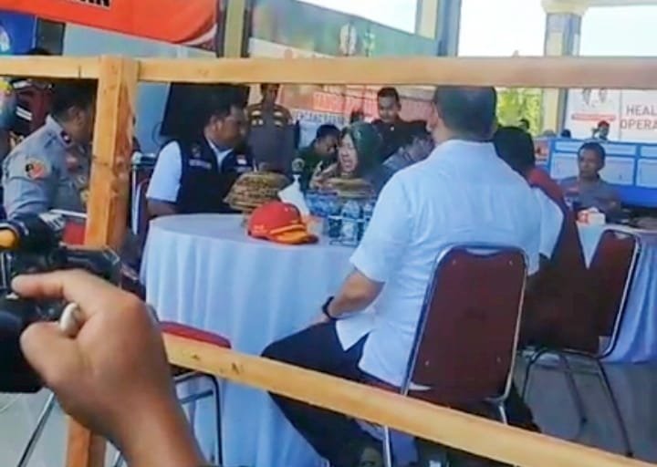 Menteri Sosial, Tri Rismaharini menyambangi posko induk tanggap bencana alam Sulawesi Selatan di Lapangan Andi Djemma, Kota Belopa, Luwu. (ist)