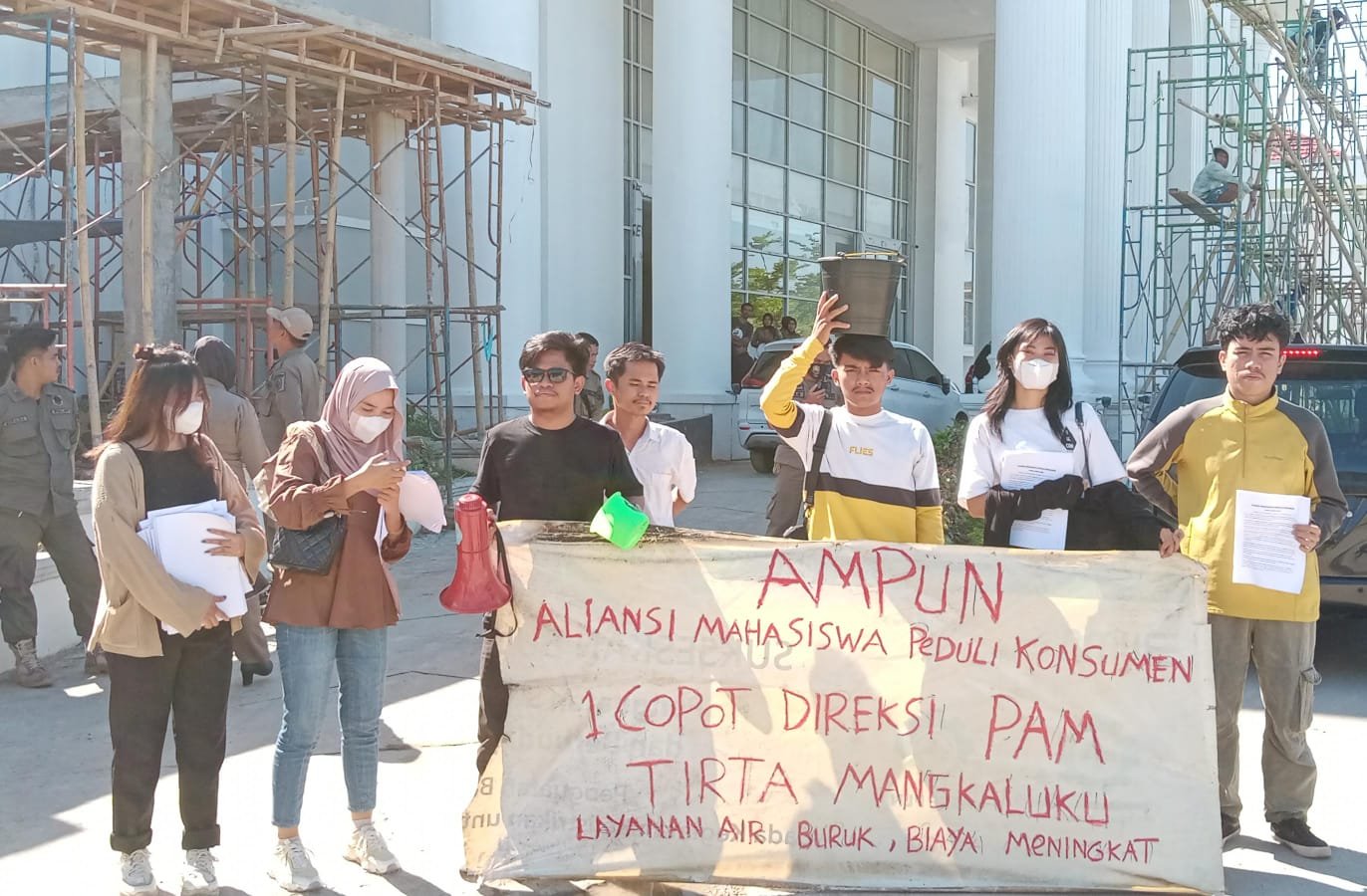 PALOPO, TEKAPE.co – Puluhan massa yang tergabung dalam Aliansi Mahasiswa Peduli Konsumen (AMPUN) melakukan aksi unjuk rasa guna mendesak Pj Walikota Palopo untuk mencopot Direksi PAM-TM Palopo, yang dinilai tidak mampu menjalankan tugasnya dengan baik, Senin 16 Oktober 2023.