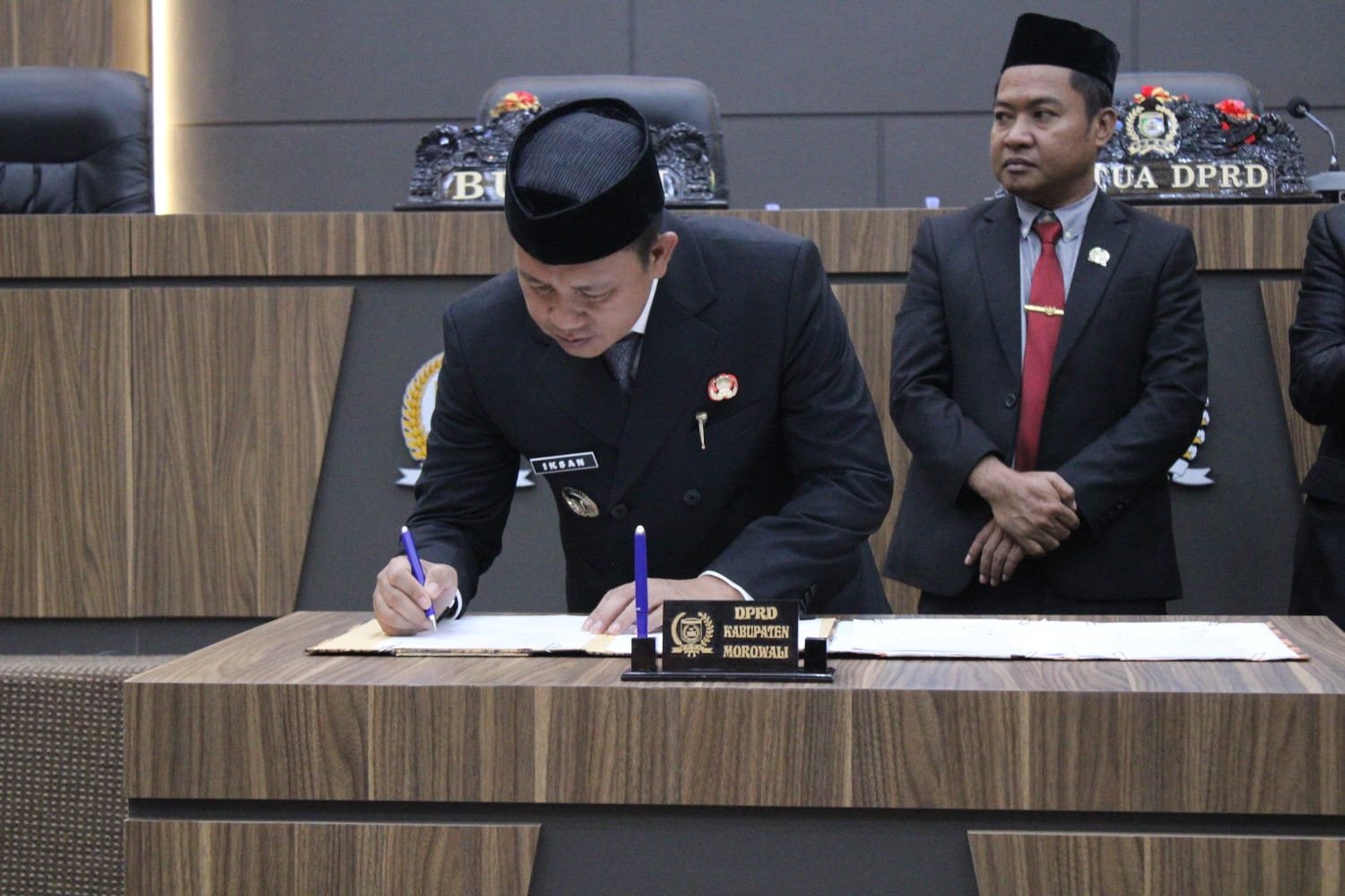 Penandatanganan dilakukan dalam Rapat Paripurna ke-3 dan ke-4 Masa Persidangan III Tahun Sidang 2024–2025, yang digelar di Ruang Rapat Paripurna DPRD Morowali, Desa Bahoruru, Kecamatan Bungku Tengah. Rapat ini juga membahas perubahan Program Pembentukan Peraturan Daerah (Propemperda) Tahun 2025.