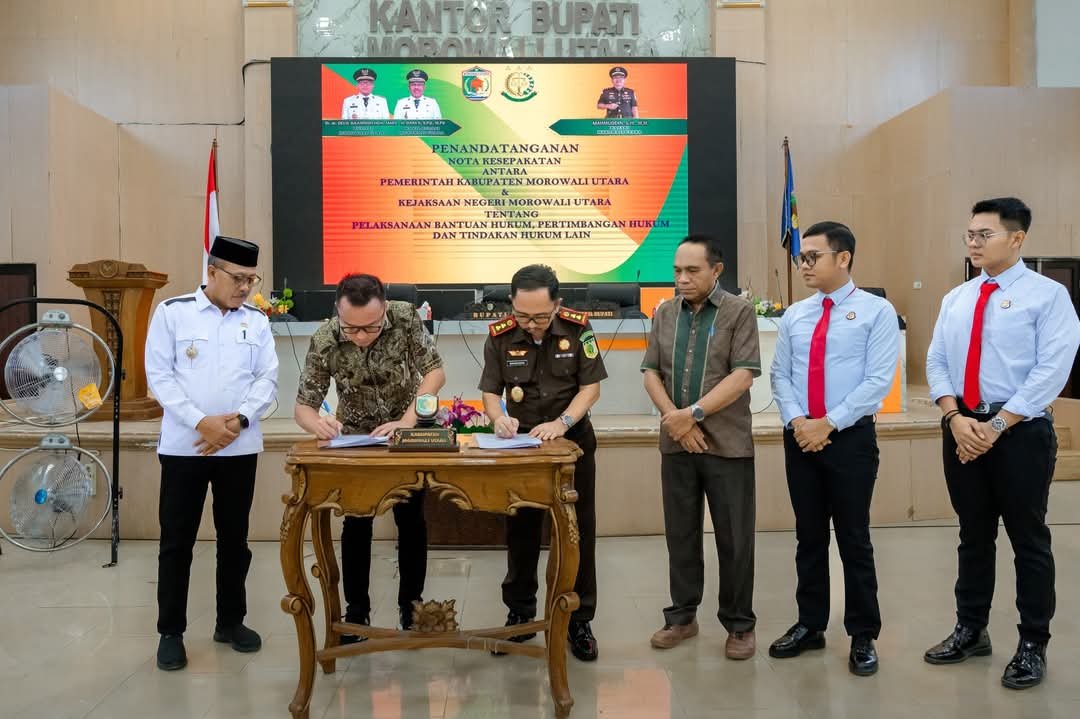 MoU ini ditandatangani oleh Bupati Morut, Delis Julkarson Hehi dan Kepala Kejaksaan Negeri Morut, Mahmuddin dalam sebuah acara resmi yang berlangsung di Ruang Pola Kantor Bupati Morut, Kolonodale, pada Jumat (14/3/2025).