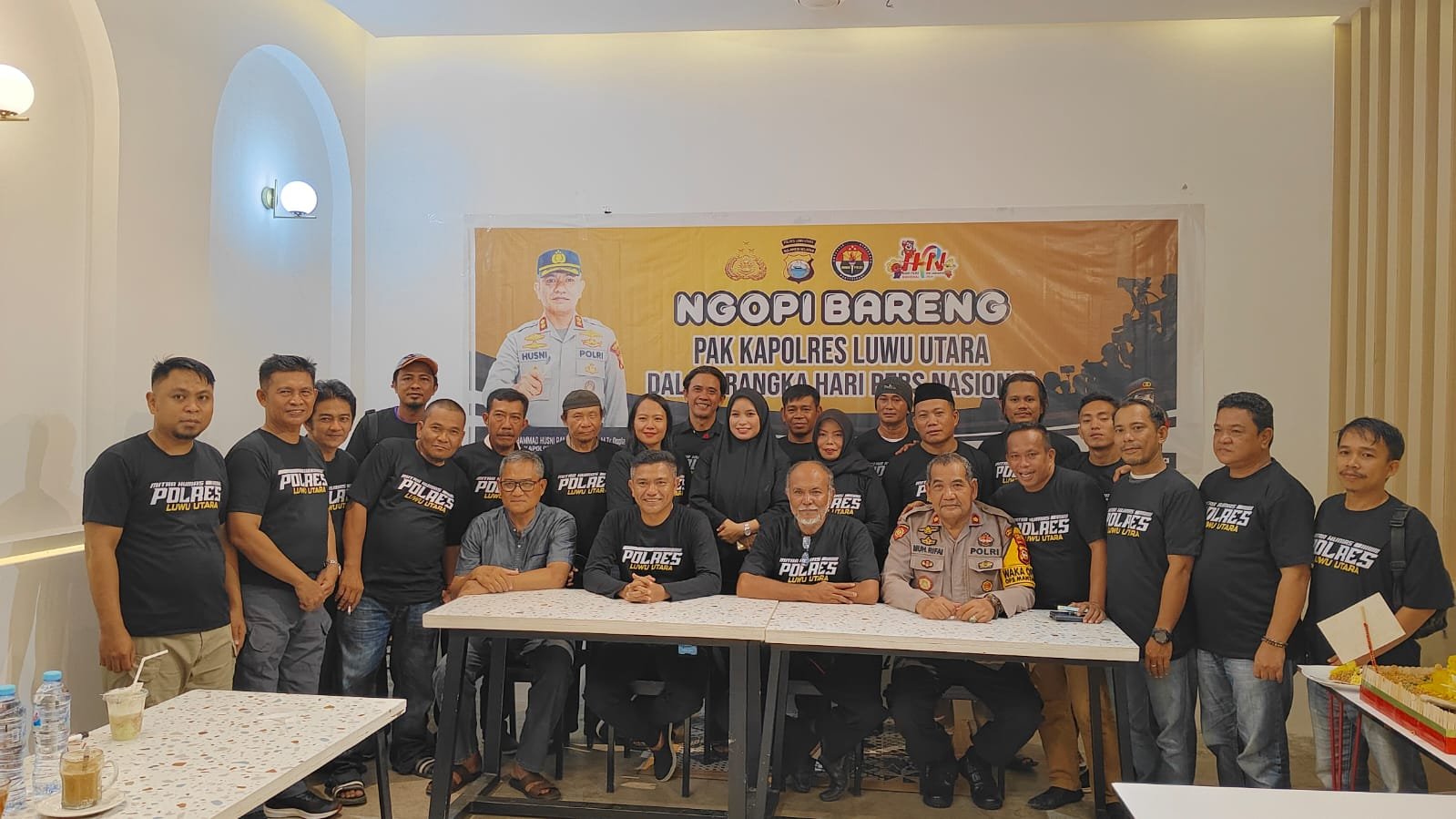 MASAMBA, TEKAPE.co – Peringati Hari Pers Nasional, Kapolres Luwu Utara AKBP M Husni Ramli menggelar ngopi bareng dengan awak media, Jumat 9 Februari 2024.