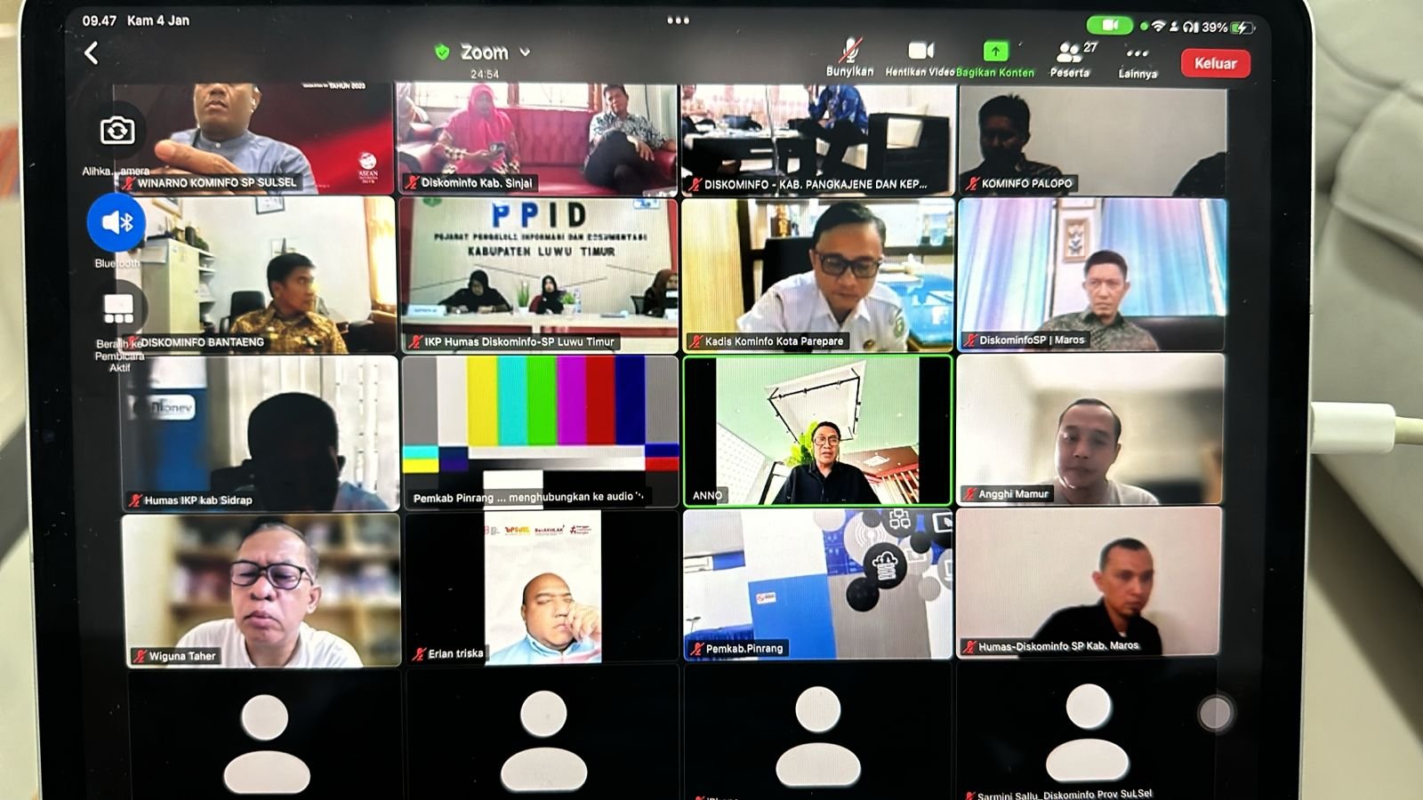 MAKASSAR, TEKAPE.co – Dinas Komunikasi, Informatika, Statistika dan Persandian (Diskominfo-SP) Sulawesi Selatan (Sulsel) Bagian Humas, melaksanakan rapat awal tahun 2024 bersama Dinas Kominfo Kabupaten dan Kota se-Sulsel secara virtual, Kamis, 4 Desember 2023. Rapat ini untuk memperkuat peran humas dalam menyampaikan informasi kepada publik.