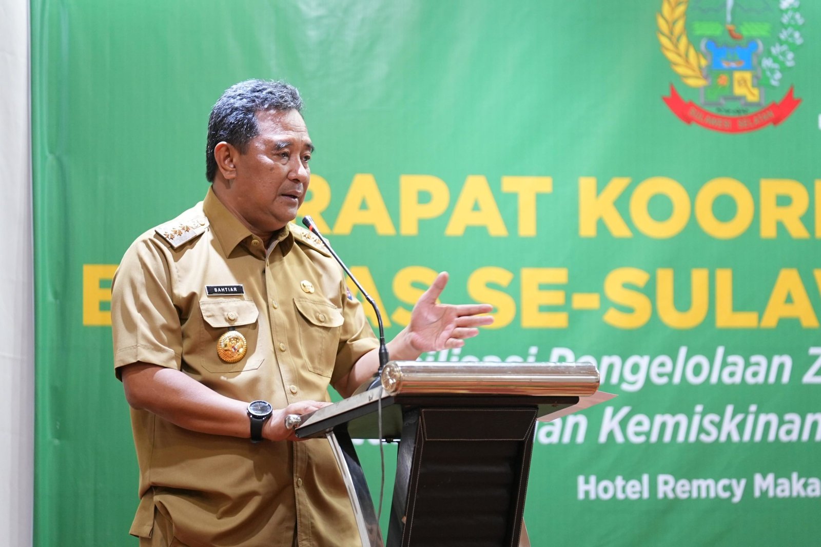 MAKASSAR, TEKAPE.co – Penjabat Gubernur Provinsi Sulsel, Bahtiar Baharuddin, memaparkan strategi solusi mengatasi kemiskinan di Sulsel, pada Rapat Koordinasi Daerah (Rakorda) Badan Amal Zakat Nasional (Baznas) se-Sulsel, di Hotel Remcy Makassar, Rabu, 1 November 2023.