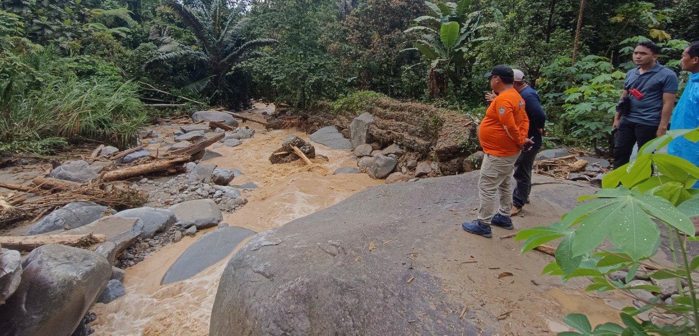 “Dari hasil pantauan kita, tampak beberapa batang pohon besar yang tumbang dan menghalangi arus air yang deras,” katanya.