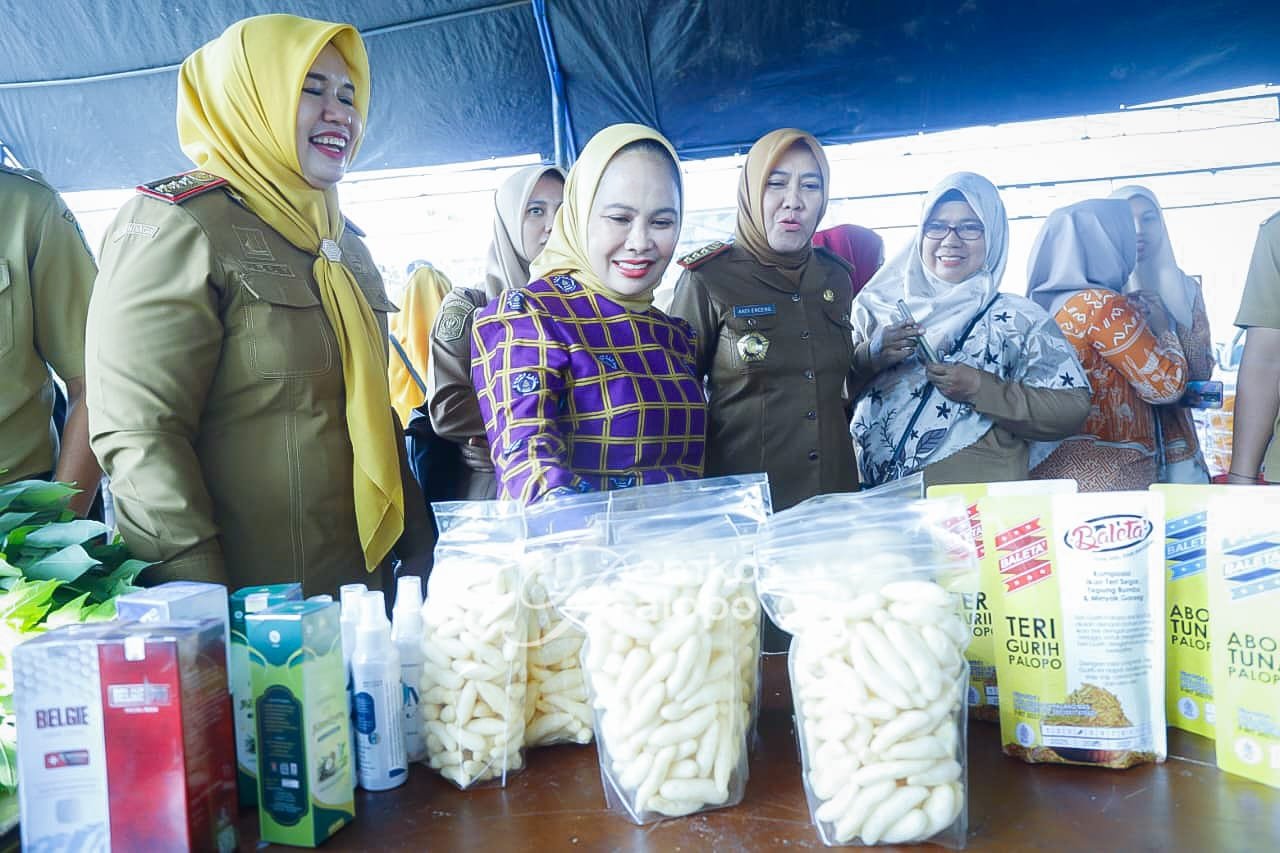 Naili mengunjungi sejumlah stan dari Dinas Ketahanan Pangan, Dinas Perdagangan, KORPRI, mitra vendor dan distributor, serta pelaku UMKM lokal yang turut berpartisipasi menyediakan bahan pangan dengan harga terjangkau bagi masyarakat.