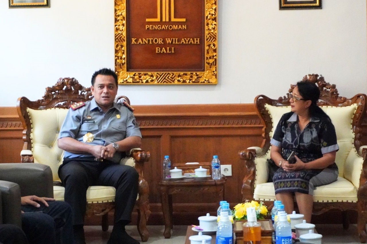 Menyambut kunjungan tersebut, Romi Yudianto menyampaikan selamat datang dan terimakasih karena telah berkunjung ke Kanwil Kemenkumham Bali.