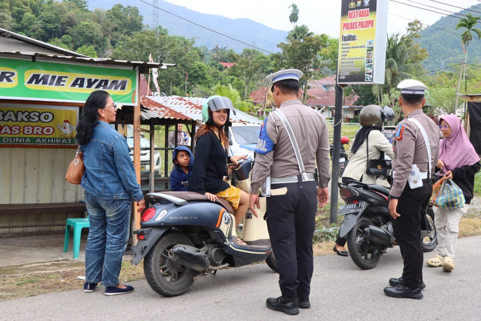 Kegiatan ini dipimpin KBO Satlantas Polres Palopo, Ipda Arifuddin, didampingi Kanit Laka Ipda Nadjamuddin, bersama sejumlah personel yang diturunkan sesuai dengan Surat Perintah Operasi Patuh 2025.