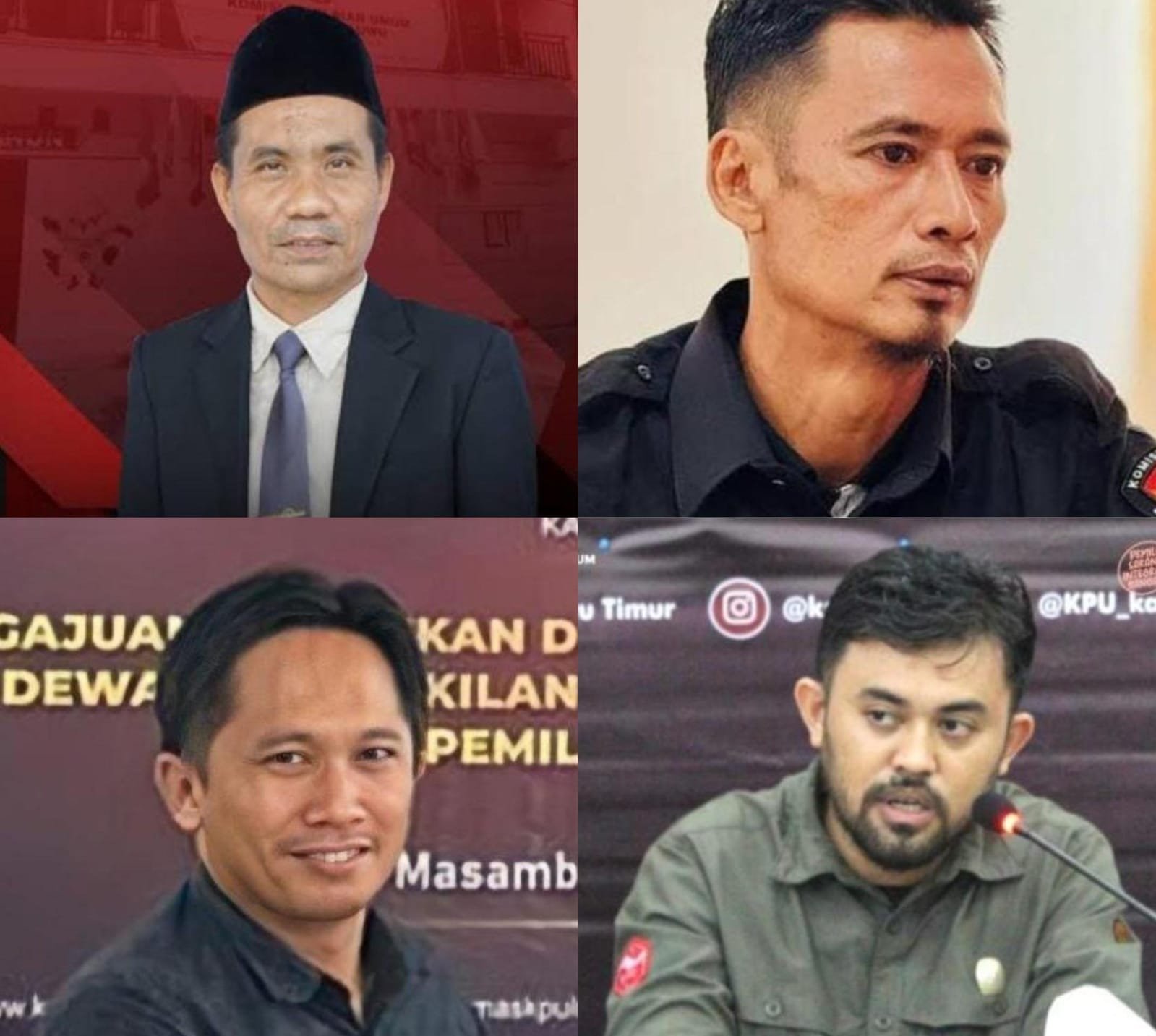 Ketua KPU Luwu, Abdullah Sappe Ampin Maja (kiri atas) Ketua KPU Palopo Irwandi Djumadin (kanan atas), Ketua KPU Lutra Hayu Vandy (kiri bawah) dan Ketua KPU Lutim, Irfan Lahabu. (ist)