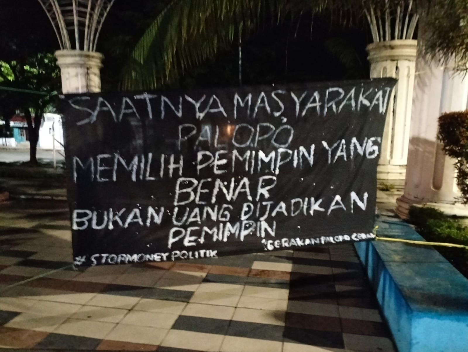 Isi dari spanduk tersebut berbunyi, “Saatnya Masyarakat Palopo Memilih Pemimpin Benar Bukan Uang Dijadikan Pemimpin,” yang seakan mengajak masyarakat untuk memilih pemimpin berdasarkan kualitas, bukan uang.