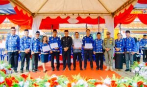 Penceramah yang juga Dosen asal Sulawesi Selatan ini disambut Bupati Morut Dr dr Delis Julkarson Hehi MARS, dan sejumlah pejabat lainnya, di pintu masuk lokasi acara, di Pelataran Pelabuhan Kolonodale, Selasa 1 November 2022.