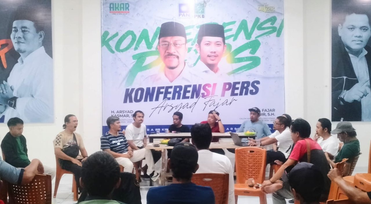 Konfrensi pers Tim BerAKAR di Posko Induk Pemenangan Tim BerAKAR, di Jalan Ir Soekarno, Kelurahan Kappuna, Kecamatan Masamba, Lutra, Sabtu 12 September 2024. (ist)