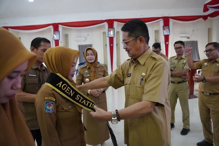 Acara juga diisi dengan pemasangan selempang kepada agen statistik 2025 serta pemaparan materi oleh narasumber dari BPS.