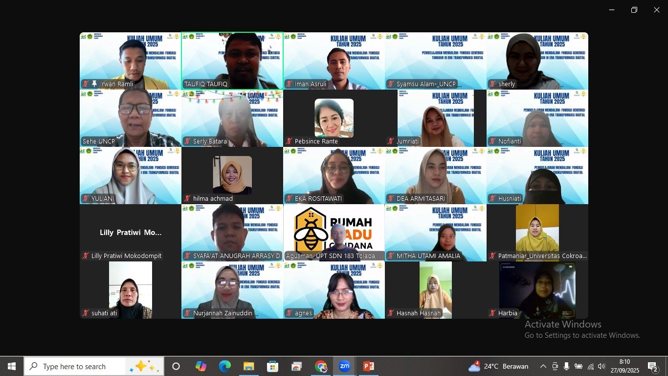 Acara yang berlangsung secara virtual itu diikuti 28 mahasiswa baru dan sivitas akademika Fakultas Keguruan dan Ilmu Pendidikan (FKIP) UNCP.