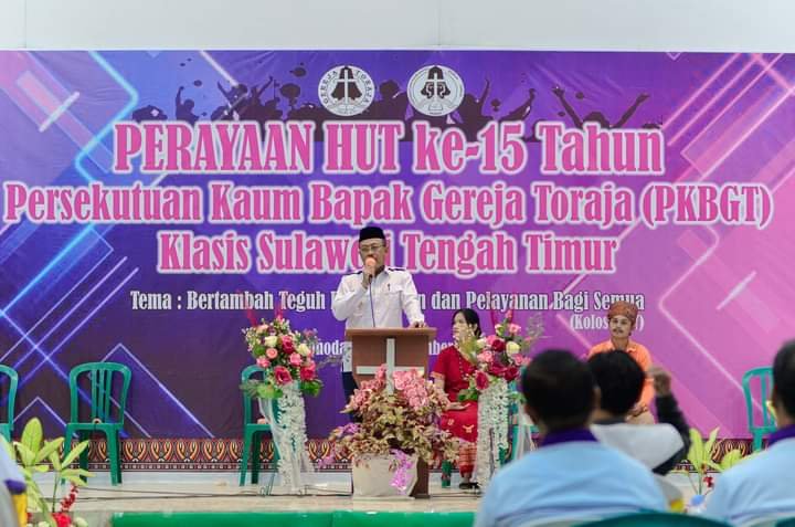 MORUT, TEKAPE.co – Wakil Bupati (Wabup) Morowali Utara (Morut) H Djira K SPd, MPd, membuka secara resmi rangkaian kegiatan Hari Ulang Tahun (HUT) ke-15 Persekutuan Kaum Bapak Gereja Toraja (PKBGT) Klasis Sulawesi Tengah dan Timur (Sultengtim), di Gereja Toraja (GT) Jemaat Diaspora Tamatiku Kolonodale, Kamis 02 November 2023 malam.