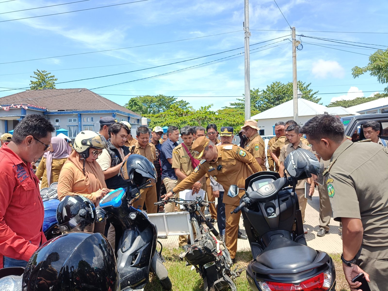Foto: Wakil Bupati Luwu, Muh. Dhevy Bijak Pawindu, SH., saat memimpin langsung pemeriksaan kendaraan dinas di lingkungan Pemerintah Kabupaten Luwu. Dalam pemeriksaan yang digelar di halaman Kantor Dinas Perhubungan, Kecamatan Belopa, Selasa, 15 April 2025, ditemukan salah satu unit kendaraan dinas roda dua yang kondisinya memprihatinkan, hanya tersisa mesin dan rangka. (doc.ilham/centralnews.co.id)
