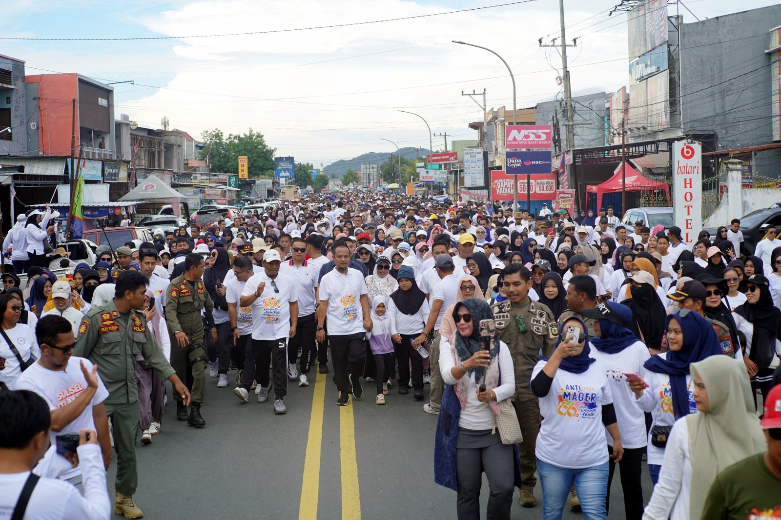 Gubernur Sulawesi Selatan, H. Andi Sudirman Sulaiman, bersama Bupati Luwu, H. Patahudding, melepas langsung peserta jalan sehat. Turut hadir Wakil Bupati Luwu, Muh. Dhevy Bijak Pawindu, Ketua DPRD Ahmad Gazali, Kapolres Luwu AKBP Arisandi, Ketua TP-PKK Hj. Kurniah Patahudding, Ketua Bidang I TP-PKK Nilasari Dhevy Bijak P, serta sejumlah anggota DPRD Sulsel Dapil Luwu Raya.